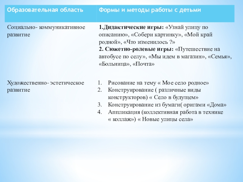 Умение передавать в рисунках и в конструктивной деятельности свои впечатления от прогулок и экскурсий по селу.