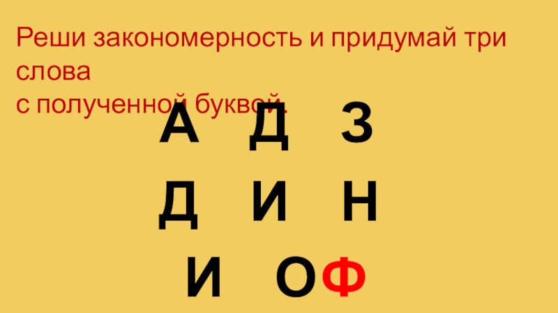 Реши закономерность и придумай три словас полученной буквой.А  Д  З Д  И  Н