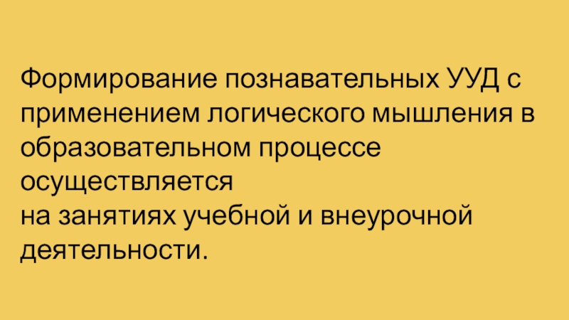 Формирование познавательных УУД с применением логического мышления вобразовательном процессе осуществляетсяна занятиях учебной и внеурочной деятельности.