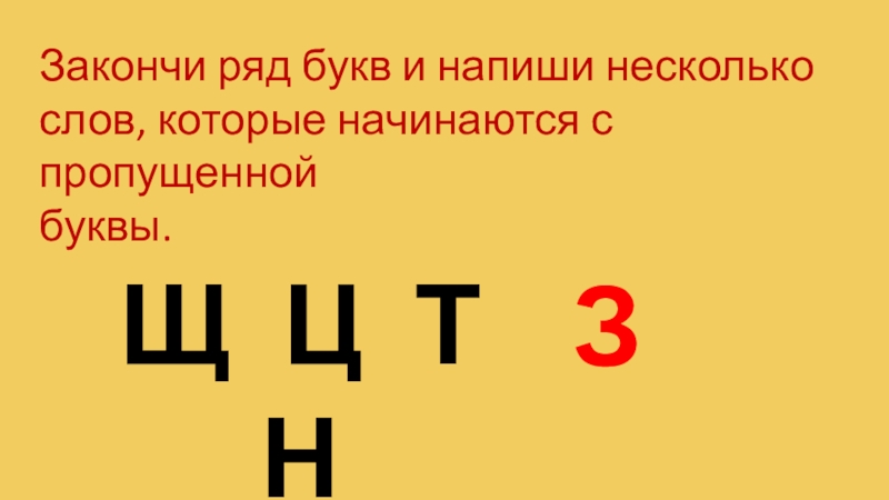 Закончи ряд букв и напиши несколькослов, которые начинаются с пропущеннойбуквы.Щ Ц Т НЗ