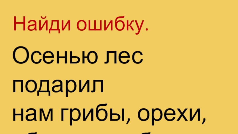 Найди ошибку.Осенью лес подарилнам грибы, орехи,яблоки и рябину.