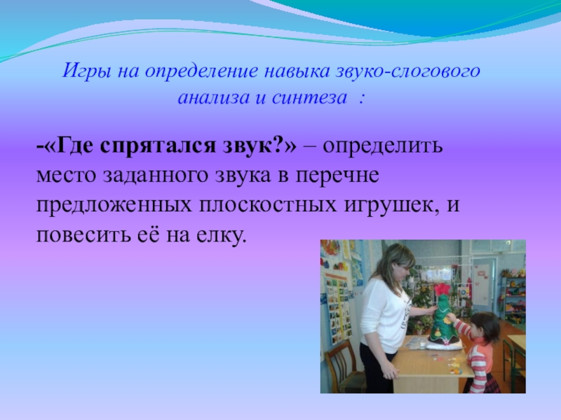 Слайд 17Игры на определение навыка звуко-слогового анализа и синтеза :