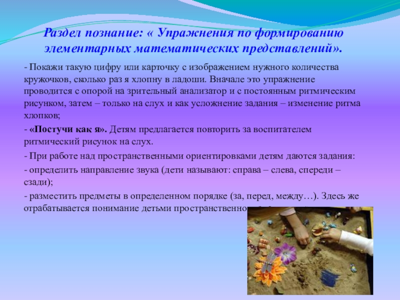 Раздел познание: « Упражнения по формированию элементарных математических представлений».