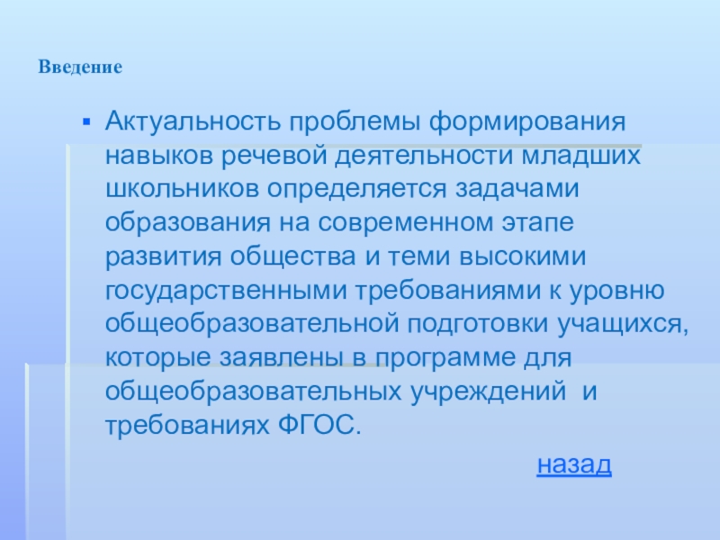 Актуальность проблемы формирования навыков речевой деятельности младших школьников определяется задачами образования