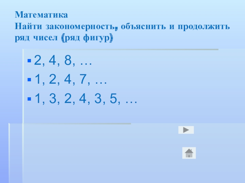 Найти закономерность, объяснить и продолжить ряд чисел (ряд фигур)
