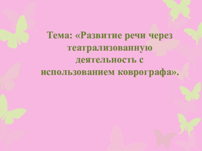 Слайд 1Тема: «Развитие речи через театрализованную деятельность с использованием коврографа».