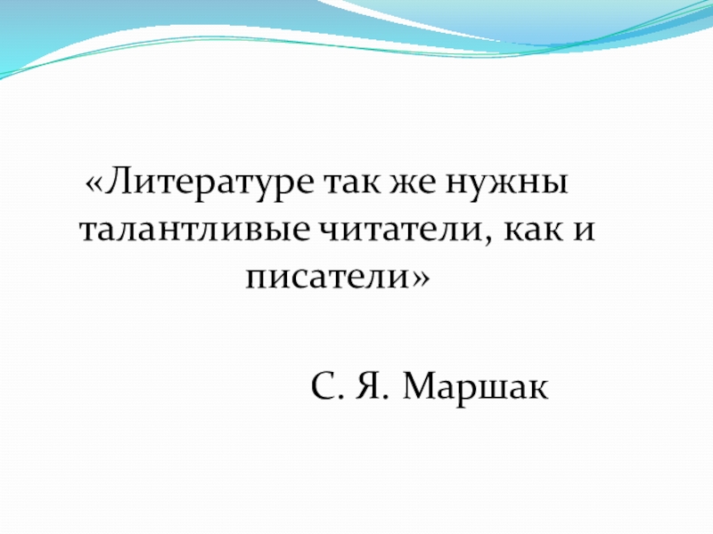 «Литературе так же нужны талантливые читатели, как и писатели» С. Я. Маршак