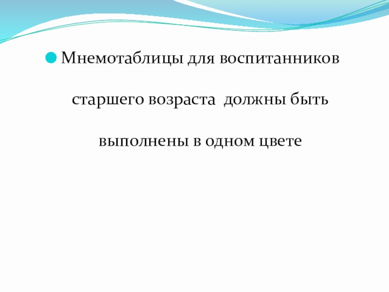 Слайд 15Мнемотаблицы для воспитанников старшего возраста должны быть выполнены в одном цвете