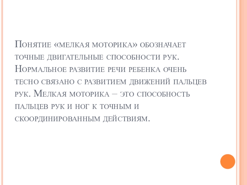 Слайд 3Понятие «мелкая моторика» обозначает точные двигательные способности рук.