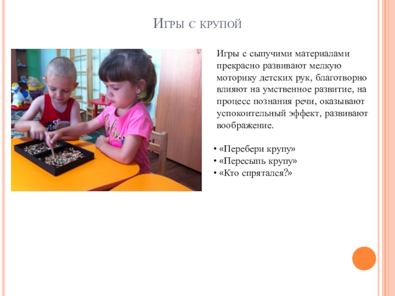 Слайд 11Игры с крупой