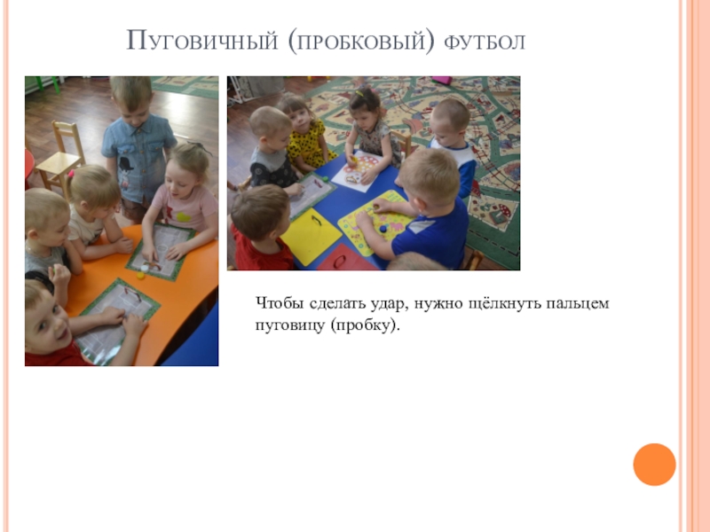 Слайд 13Пуговичный (пробковый) футбол