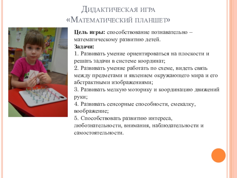 Цель игры: способствование познавательно – математическому развитию детей.