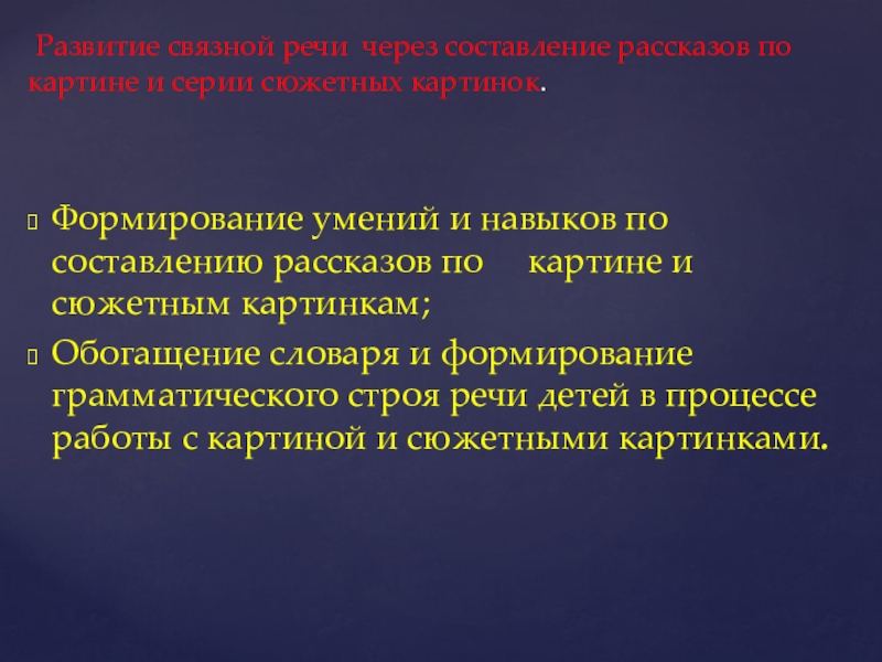 Развитие связной речи через составление рассказов по картине и серии сюжетных картинок.