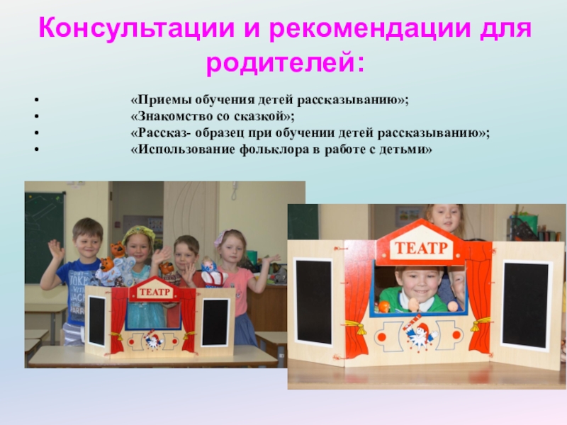 Слайд 15Виды театров для использования в работе: