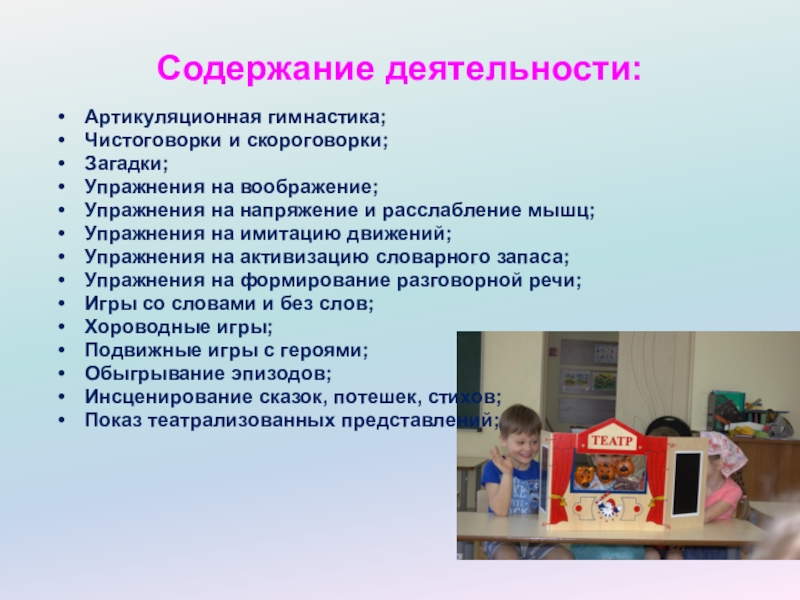 Слайд 10Содержание деятельности:
