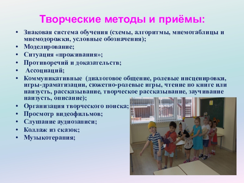 Слайд 9Творческие методы и приёмы: