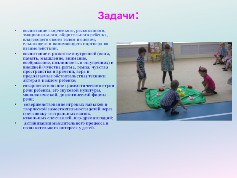 творческого, раскованного, эмоционального, общительного ребенка, владеющего своим телом и словом, слышащего и понимающего партнера во взаимодействии;