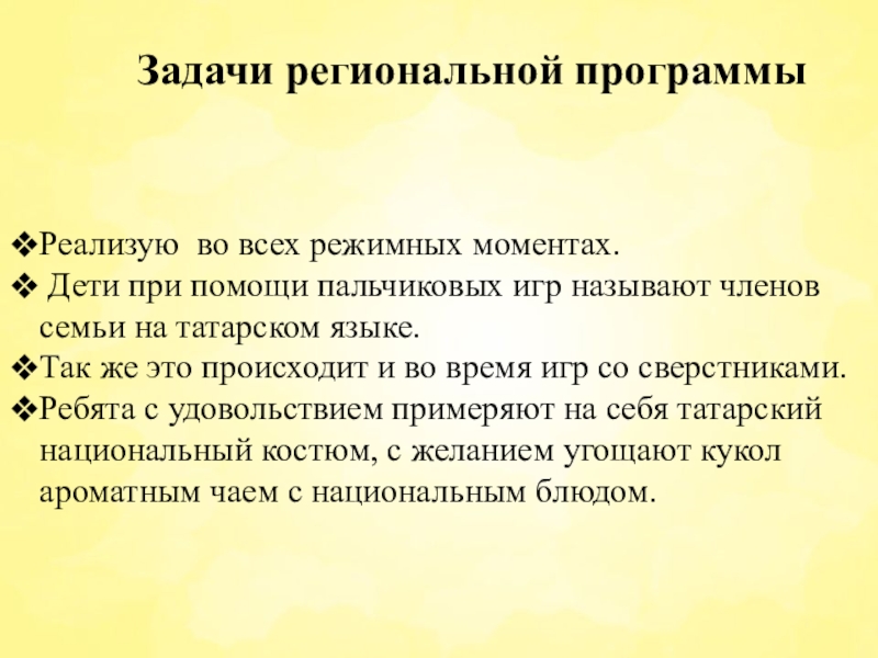 Практические методы позволяли уточнять и углублять представления детей о фольклоре, способствовали возникновению атмосферы заинтересованности;