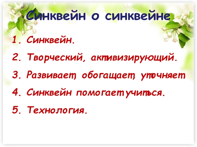 синквейны в форме игры.