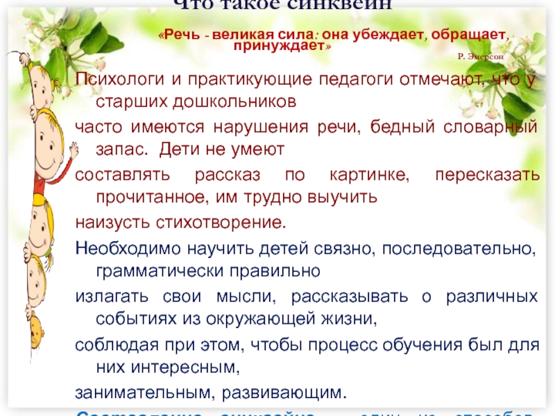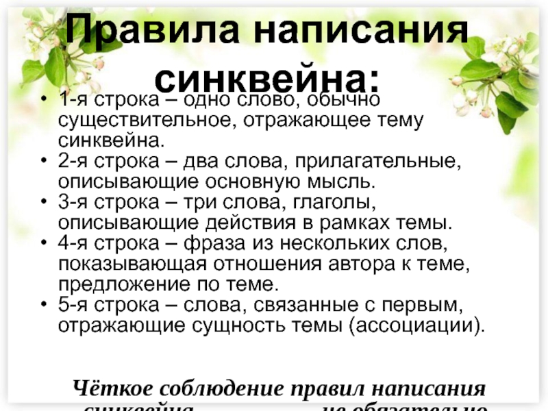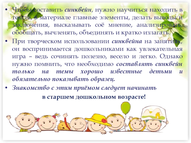 Составление синквейна – один из способов частичного решения этих проблем.