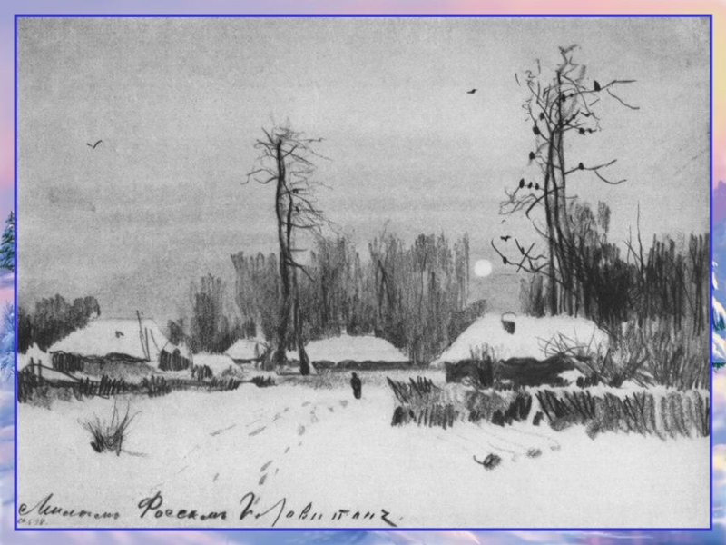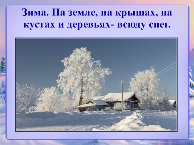 Слайд 10Зима. На земле, на крышах, на кустах и деревьях- всюду снег.