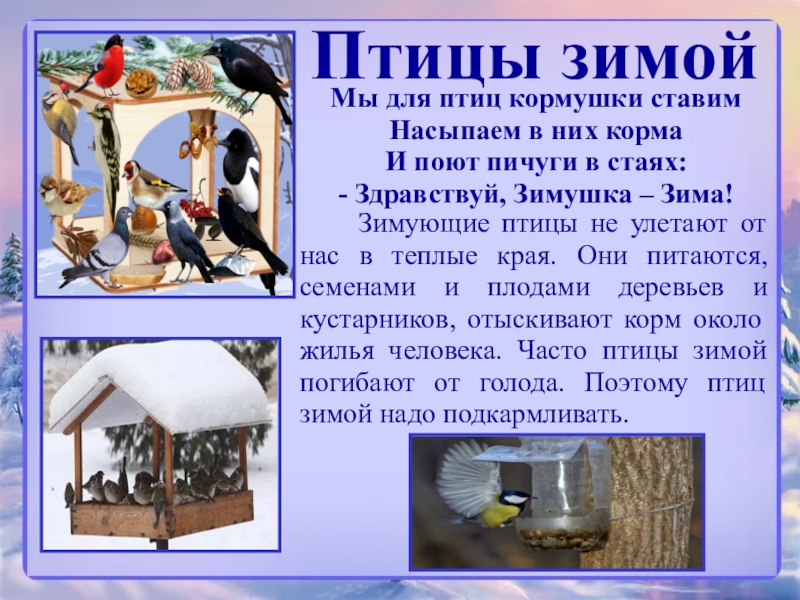 -Что нужно делать человеку, чтобы облегчить зимовку птиц?