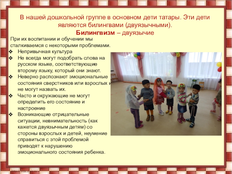 Слайд 6В нашей дошкольной группе в основном дети татары. Эти дети являются