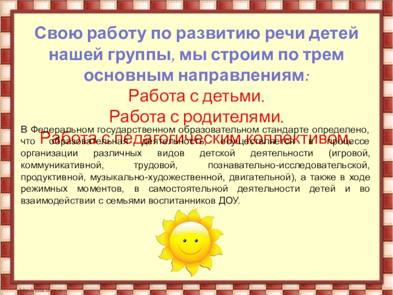 Слайд 3Свою работу по развитию речи детей нашей группы, мы строим по