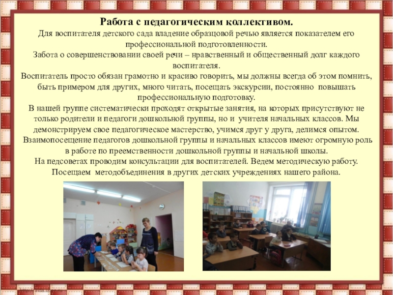 Воспитатель просто обязан грамотно и красиво говорить, мы должны всегда об этом помнить, быть примером для других, много читать, посещать экскурсии, постоянно повышать профессиональную подготовку.