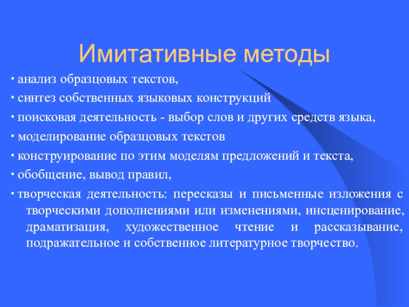 ▪ наконец, «пробу пера» - литературно-творческие попытки в прозе, в стихах, в драматических жанрах. По последней причине метод нередко называют коммуникативно-творческим.