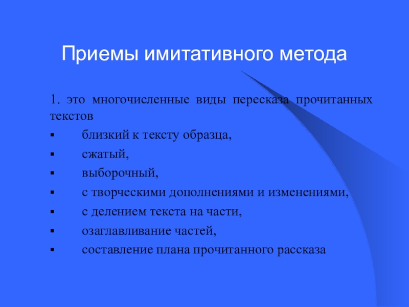 ∙ творческая деятельность: пересказы и письменные изложения с творческими дополнениями или изменениями, инсценирование, драматизация, художественное чтение и рассказывание, подражательное и собственное литературное творчество.