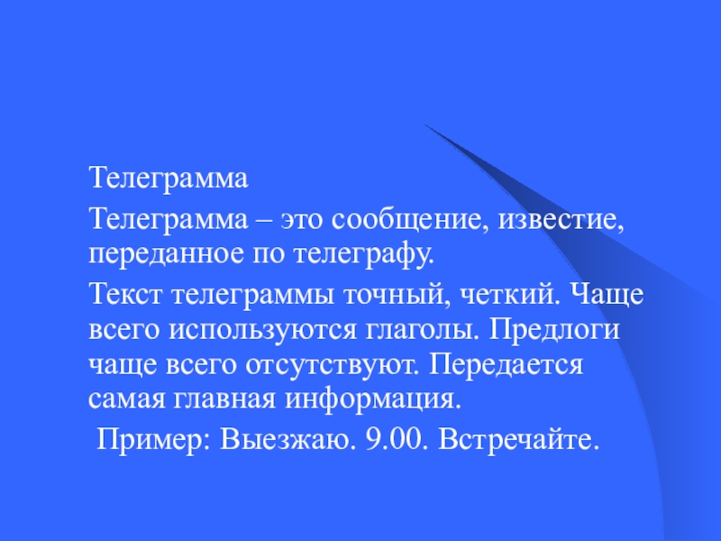 Телеграмма – это сообщение, известие, переданное по телеграфу.