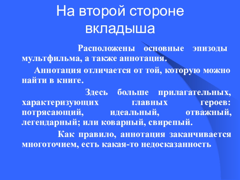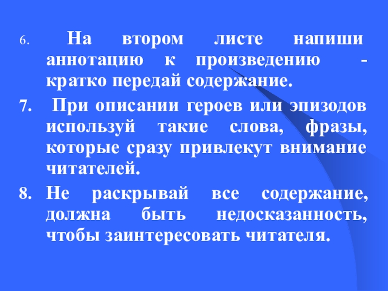 Слайд 50 На втором листе напиши аннотацию к произведению - кратко передай