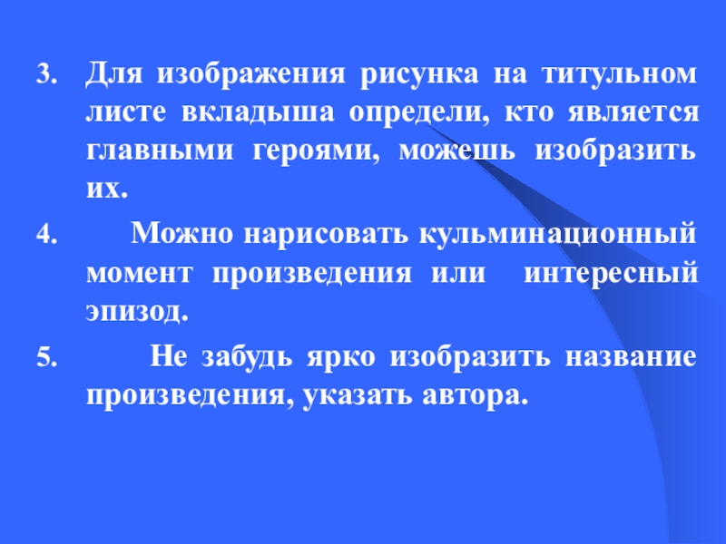 Слайд 49Для изображения рисунка на титульном листе вкладыша определи, кто является главными