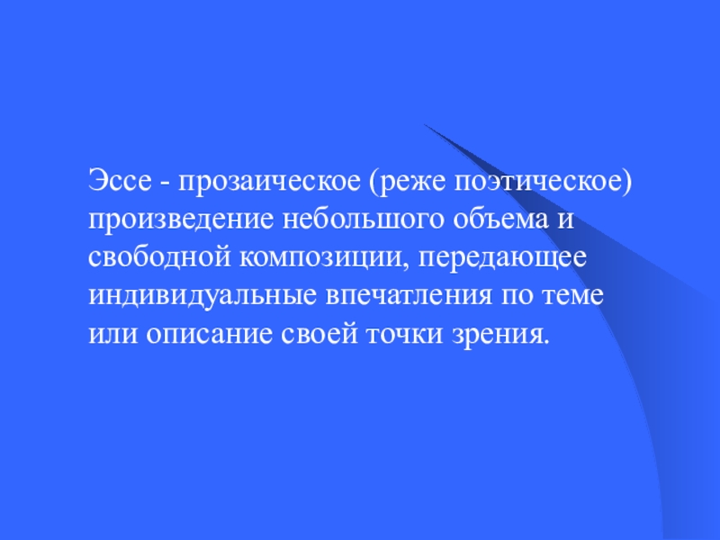 Эссе - прозаическое (реже поэтическое) произведение небольшого объема и свободной композиции,