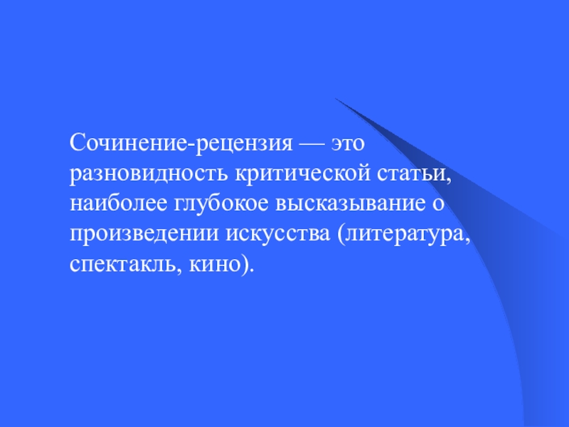 Сочинение-рецензия — это разновидность критической статьи, наиболее глубокое высказывание о произведении