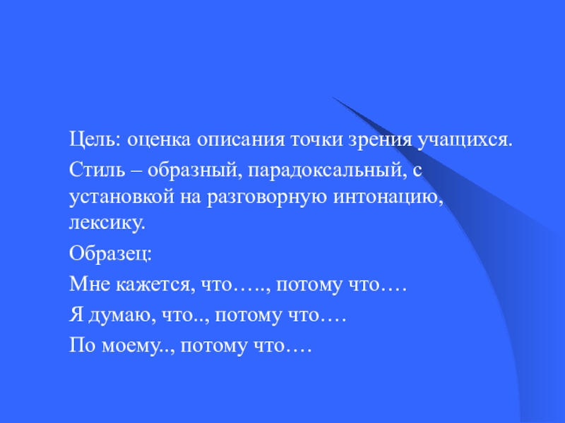 передающее индивидуальные впечатления по теме или описание своей точки зрения.