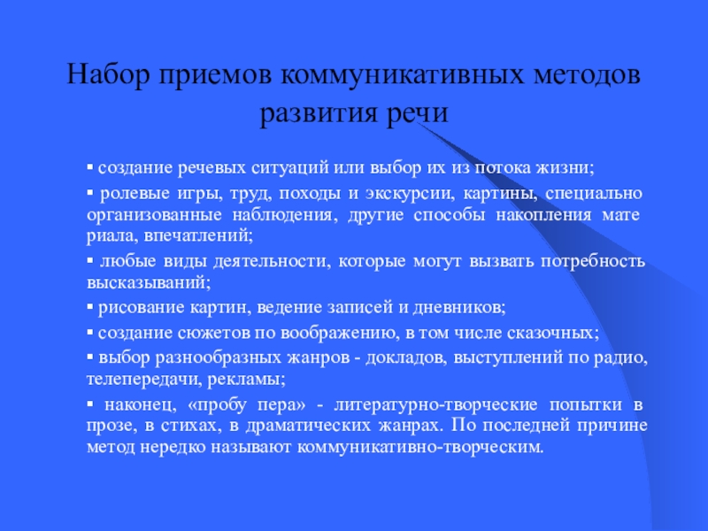 Слайд 13Набор приемов коммуникативных методов развития речи