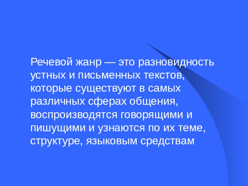 Речевой жанр — это разновидность устных и письменных текстов, которые существуют