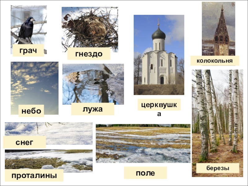 березыцерквушкалужаснеггнездограчколокольняпроталиныполенебо