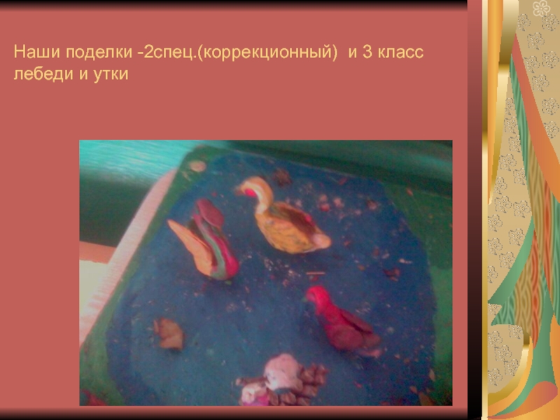 Слайд 58Наши поделки -2спец.(коррекционный) и 3 класс лебеди и утки