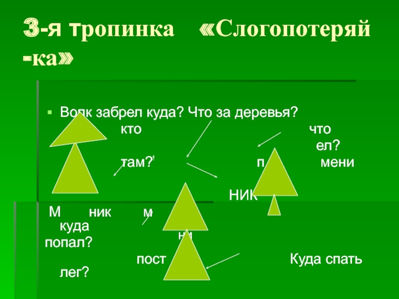 Слайд 39 3 –я тропинка «СЛОГОПОТЕРЯЙ -КА.»