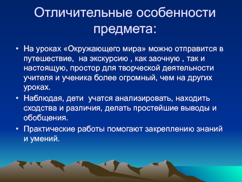 Слайд 5Отличительные особенности предмета: