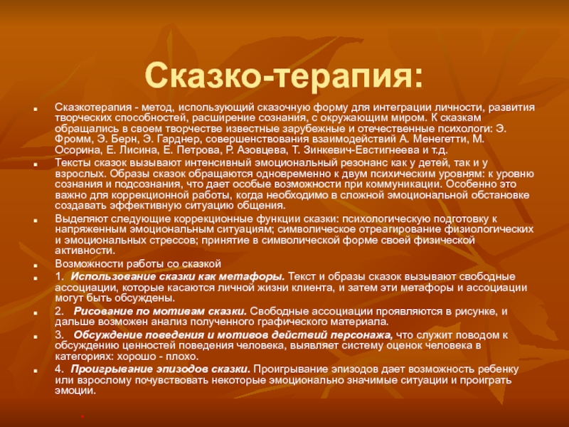 игра позволяет соприкоснутся со своими личностными проблемами, быть сними в конфронтации, в безопасной ситуации и дает возможность управлять ситуацией (А.С. Спиваковская);