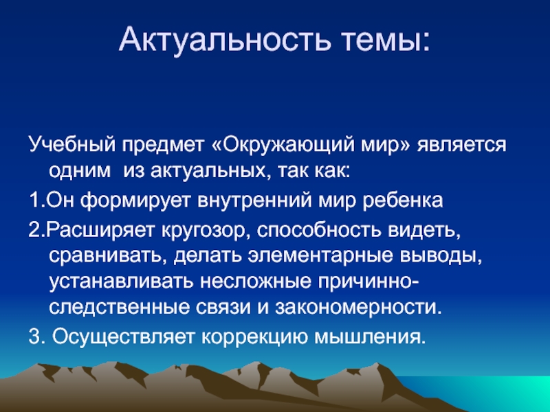 Учебный предмет «Окружающий мир» является одним из актуальных, так как: