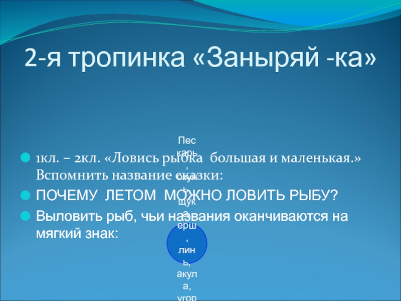 Выловить рыб, чьи названия оканчиваются на мягкий знак: