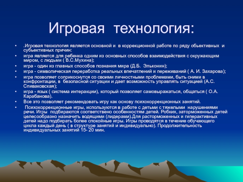 .Игровая технология является основной и в коррекционной работе по ряду