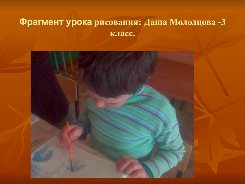 Слайд 60Фрагмент урока рисования: Даша Молодцова -3 класс.
