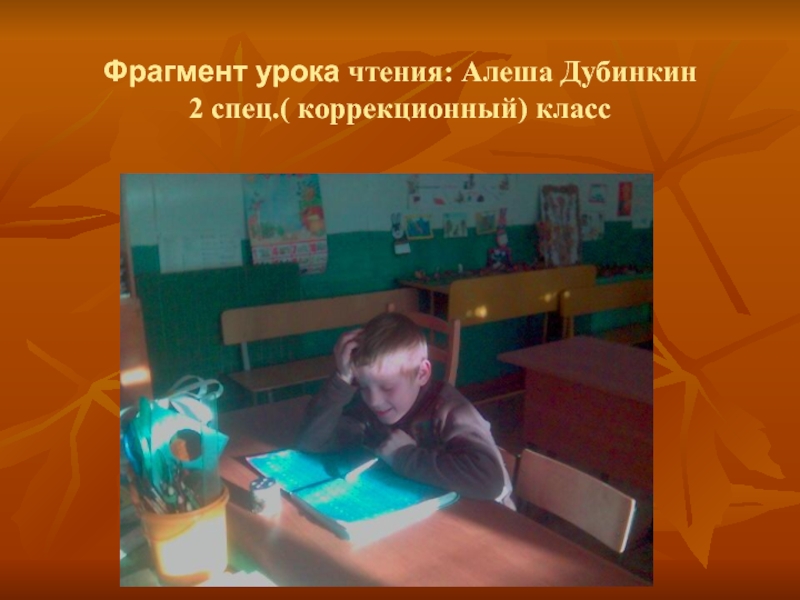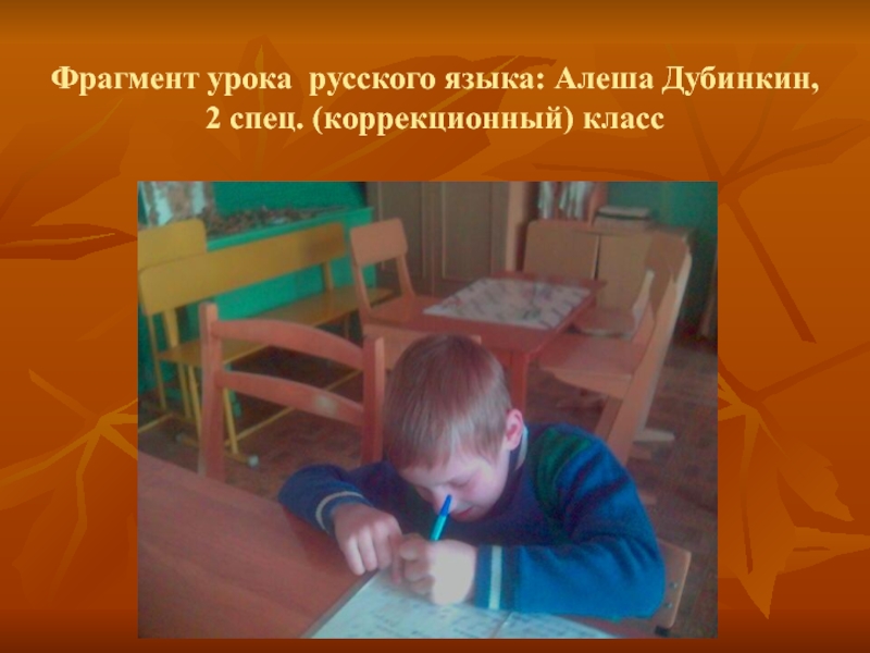 Слайд 52Фрагмент урока русского языка: Алеша Дубинкин, 2 спец. (коррекционный) класс