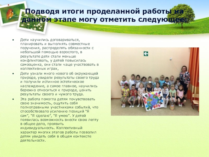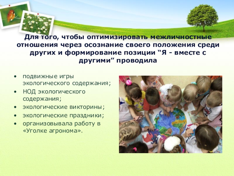 Формирование навыков постановки элементарных опытов и умения делать выводы на основе полученных результатов “Я - вместе с другими” в совместной экологической деятельности;